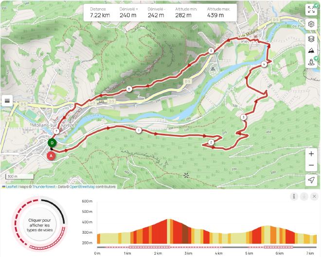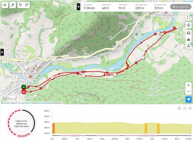 L’échauffement part le long de l’ouvèze mais monte par une jolie single dans les bois. On redescend traverser la rivière à Pierrelongue et retour par le site d’escalade.